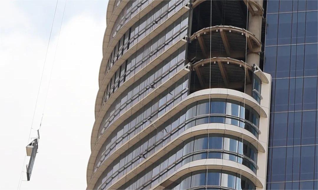 當(dāng)?shù)貧夂蜓谉岣稍?,最高氣溫可達(dá)50攝氏度,大樓幕墻需具備很強(qiáng)的防曬作用和耐高溫性能。塔樓呈雙半圓筒狀體外觀構(gòu)造,配以橫向遮陽和雙曲拉鏈梁的裝飾鋁單板,猶如古埃及女神瓦吉特的外衣。這些設(shè)計(jì)元素不僅增強(qiáng)實(shí)用功能,如減少直射日光和控制室內(nèi)溫度,且增加了建筑的視覺吸引力,使其成為一座現(xiàn)代與傳統(tǒng)相結(jié)合的建筑。